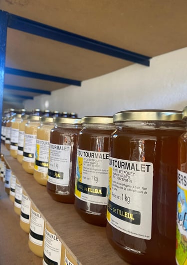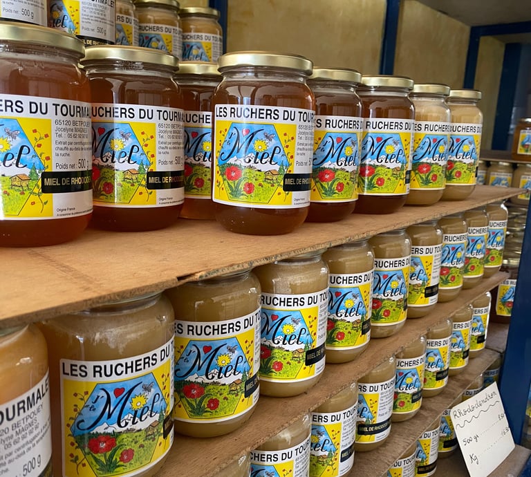 Les Ruchers du Tourmalet, producteurs de miel artisanal, vous invitent à explorer nos délices apicoles, y compris confitures au miel et pain d'épices, au cœur des montagnes.